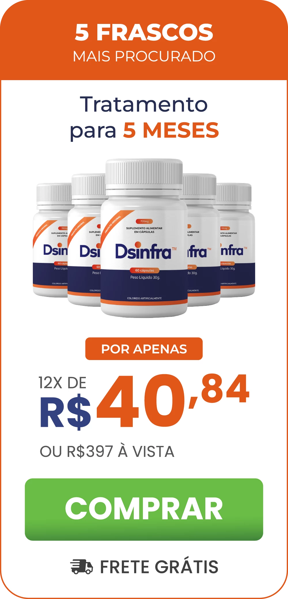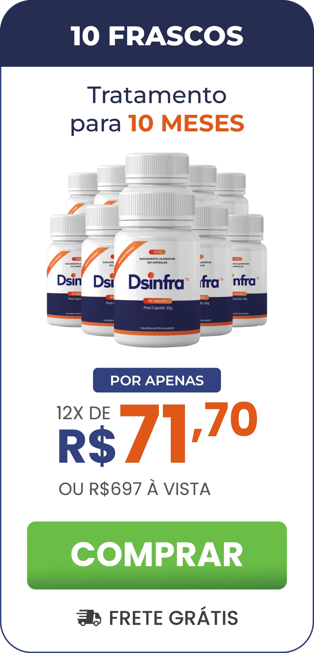 Com uma combinação precisa de ingredientes naturais, o Dsinfra age de maneira a reequilibrar a produção da Prostatina, a molécula responsável por regular a próstata e prevenir uma série de problemas desconfortáveis.